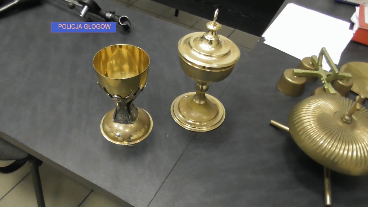 mężczyznę na terenie placówki i mogło dojść do włamania. Patrol, który przybył na miejsce zatrzymał tego człowieka, on był już na drugim piętrze. Ten szybki sygnał od ochrony pozwolił na jego zatrzymanie - relacjonuje Bogdan Kaleta z głogowskiej komendy. Zatrzymany 28-latek jest znany policji z podobnych przestępstw. Za ten czyn grozi mu do 10 lat za kratkami. Dodajmy jeszcze, że mężczyzna zanim połasił się na przedmioty liturgiczne, wkradł się do szatni skąd zabrał kurtkę wartą 550 złotych.
