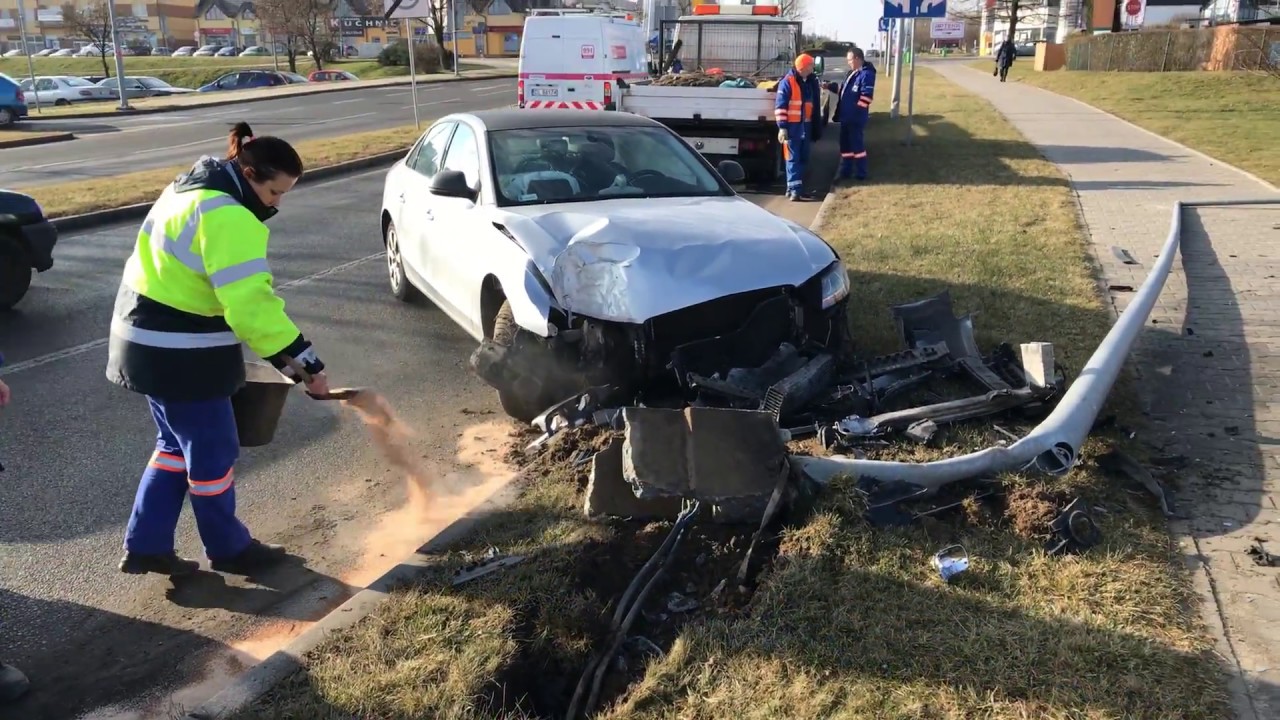 Sporo szczęścia miał kierowca srebrnego audi, który wyszedł z tej kolizji bez szwanku. Jadąc ulicą Zwierzyckiego w kierunku centrum, na drogę nagle wyskoczył mu kot. Chcąc uniknąć potrącenia zwierzęcia, gwałtownie skręcił i zahamował. Niestety samochód skosił uliczną latarnię.