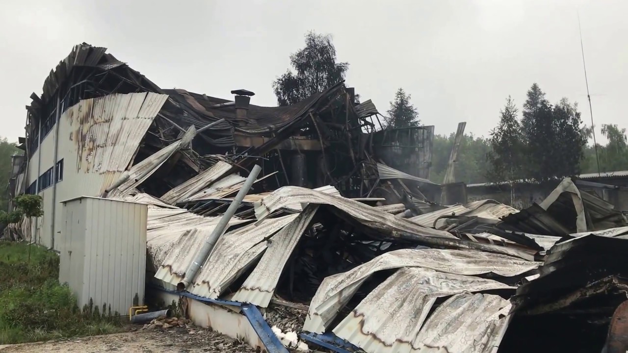 Krajobraz po gigantycznym pożarze fabryki styropianu