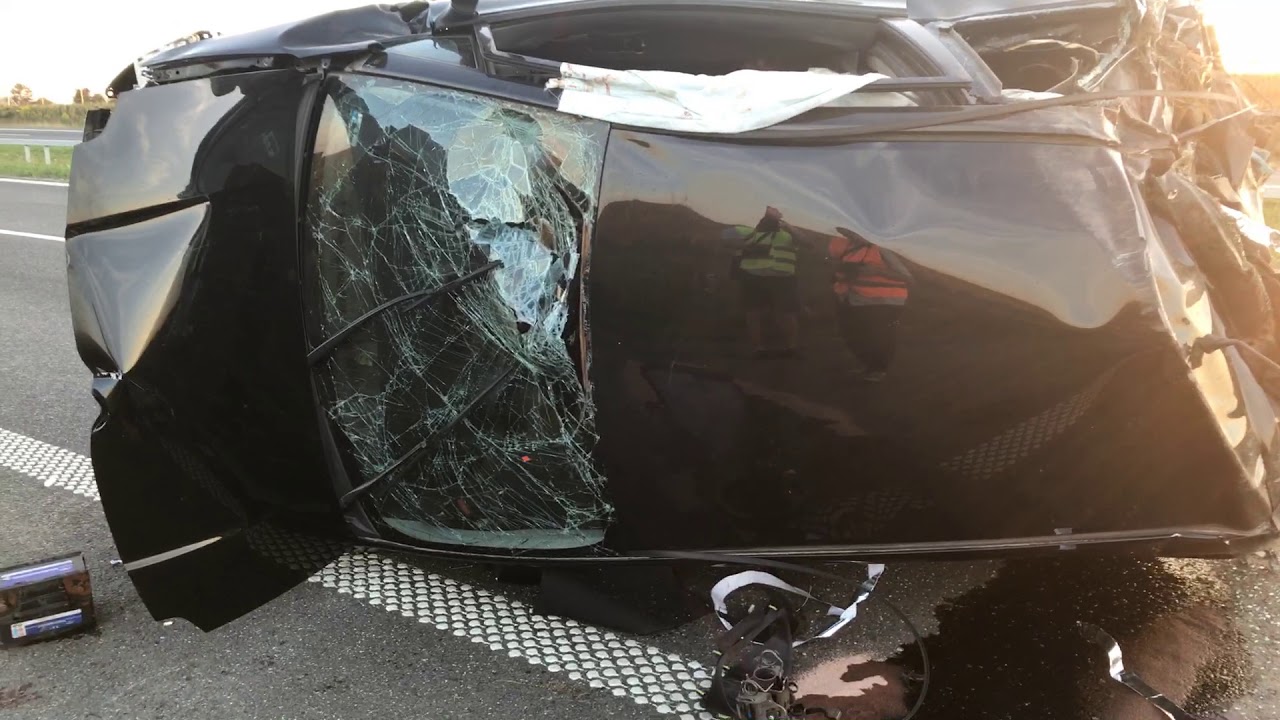 Samochód wypadł z drogi, odbił się od skarpy, kilkukrotnie dachował i "wrócił" na jezdnię.