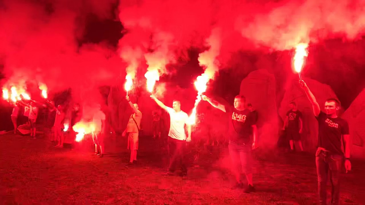 Miedziowych z Wisłą Kraków (sobota, godz. 20-przyp. red.)., dlatego fani Zagłębia postanowili tuż po północy oddać hołd ofiarom Zbrodni Lubińskiej. Wszyscy spotkali się przy pomniku Pamięci Ofiar Lubina'82. Odśpiewano Mazurka Dąbrowskiego i odpalono race.