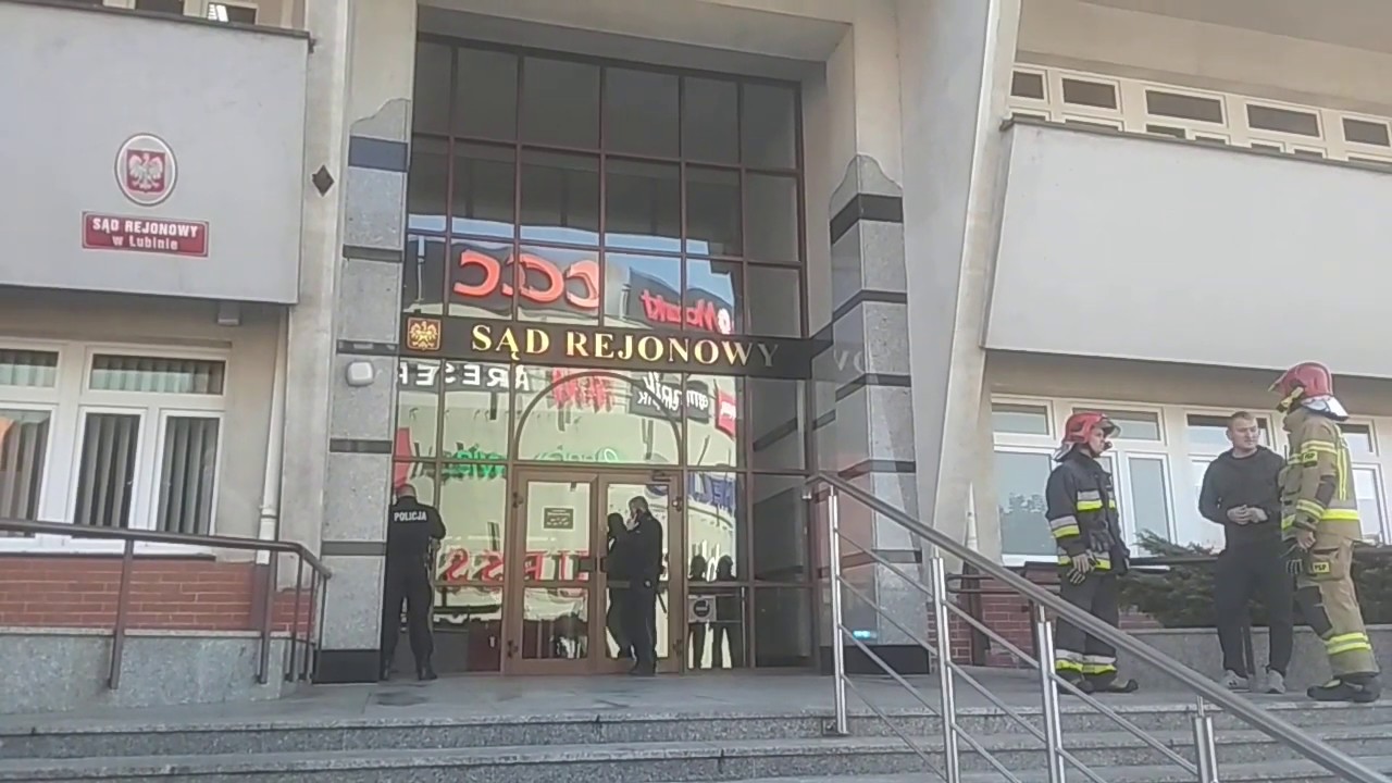 Dziś po godzinie 10. ktoś anonimowo poinformował o podłożeniu ładunku wybuchowego w siedzibie Sądu Rejonowego w Lubinie. Na miejscu natychmiast pojawiły się służby porządkowe i ratunkowe. Obecnie trwa przeszukiwanie pomieszczeń administracyjnych i sal, w których na co dzień odbywają się rozprawy. Policjanci będą teraz ustalać tożsamość osoby, która zgłosiła informację o podłożeniu bomby.