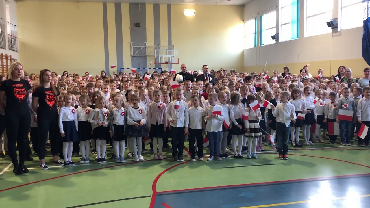 Uczniowie ubrani byli w odświętne stroje. Trzymając w rękach flagi państwowe zaśpiewali cztery zwrotki Mazurka Dąbrowskiego. - Bardzo się cieszę, że zaśpiewała cała szkoła. Jestem dumna, że mogłam brać w tym udział. Było bardzo miło i przyjemnie - powiedziała nam jedna z uczennic.