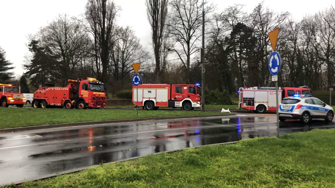 zabezpieczali teren, a także neutralizowali paliwo, które wyciekło na asfalt z uszkodzonego zbiornika. Kierowcy cysterny nic się nie stało. Na miejsce przyjechało także pogotowie energetyczne, które zajmie się usuwaniem uszkodzonej latarni. Specjalistyczna pomoc drogowa zajmie się usunięciem z ronda uszkodzonego pojazdu marki iveco.
