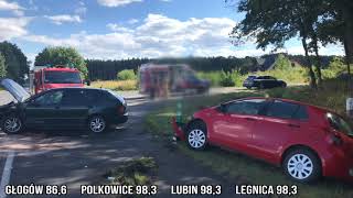 Do poważnego zdarzenia doszło dzisiaj po południu na drodze Lubin - Rudna. Na wysokości skrętu do Rynarcic, zderzyły się dwa samochody osobowe: skoda i toyota. Sprawcą zdarzenia był kierowcy skody, który prawdopodobnie zaczął wyprzedzać motorowerzystę, ale nie upewnił się, czy ktoś nie jedzie z przeciwnego pasa ruchu. W tym momencie nadjechała kobieta kierująca toyotą i doszło do zderzenia. Na miejscu pracowali policjanci z wydziału ruchu drogowego i dochodzeniowo-śledczego, którzy będą ustalać szczegółowe okoliczności tego zdarzenia.