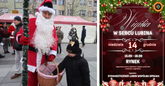 | Lubin Stowarzyszenie Lubin Wspólna Sprawa zaprasza wszystkich mieszkańców na wspólną Wigilię w samym sercu miasta. W niedzielę,14 grudnia, na płycie lubińskiego rynku, już po raz trzeci odbędzie się świąteczne spotkanie połączone z degustacją potraw wigilijnych, kolędowaniem i konkursami z nagrodami. więcej>> | ||||||||