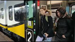 Pociąg w żółto-białych barwach województwa dolnośląskiego zajechał na peron ścinawskiego dworca 2022