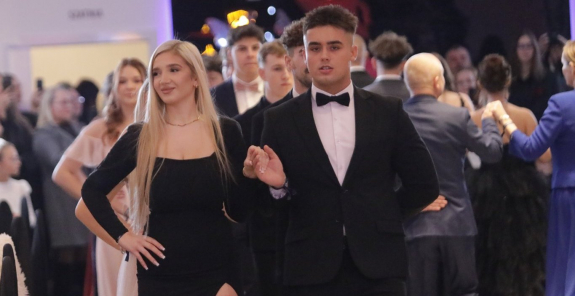 | Maturzyści Zespołu Szkół i włodarze miasta zatańczyli poloneza na rynku w Polkowicach Szkoła/Twórcze odloty | |