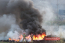 Pożar traw i opon przy górce śmietniska, przy drodze do Kłopotowa