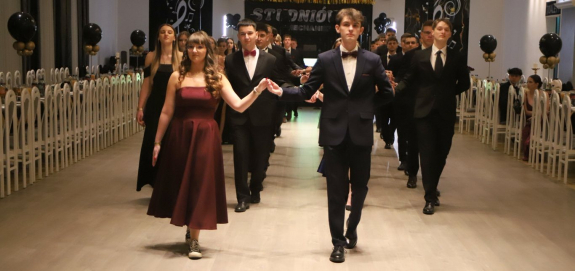 | Maturzyści Zespołu Szkół i włodarze miasta zatańczyli poloneza na rynku w Polkowicach Szkoła/Twórcze odloty | |