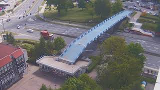Ciężarówka zahaczyła o kładkę KEN w Lubinie (monitoring miejski) 2019